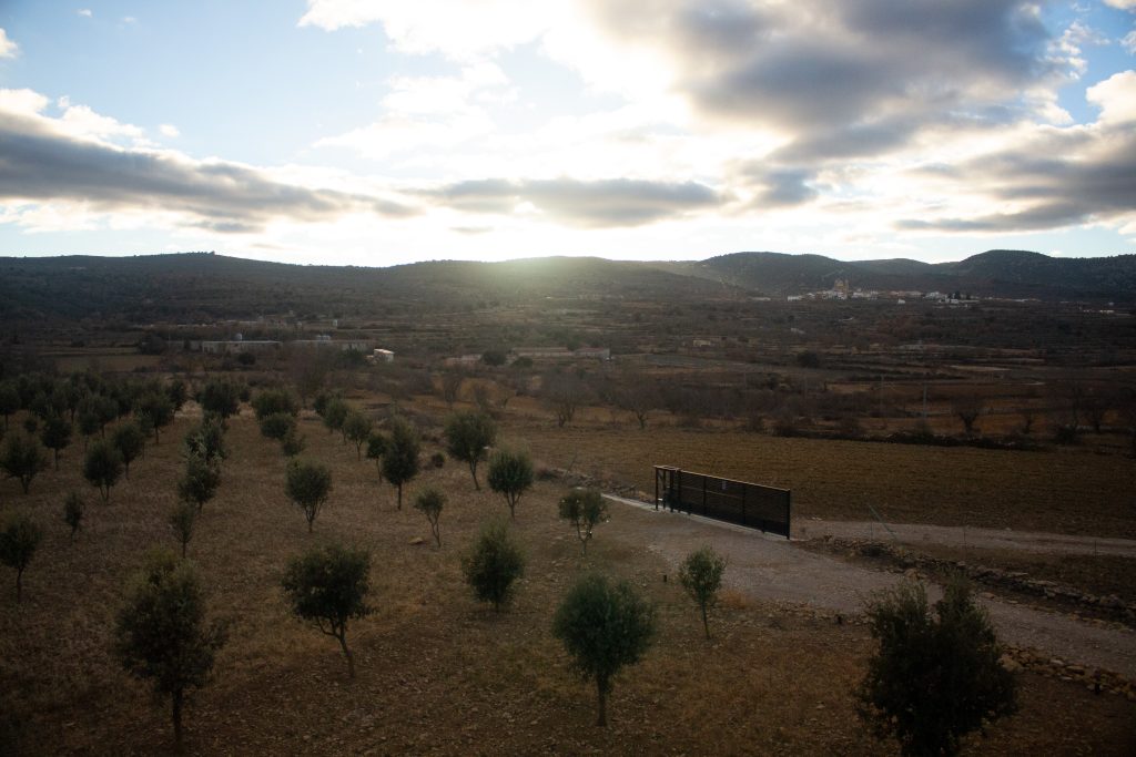 Nuestras vistas desde la casa con Cinctorres de fondo. La casa rural esta ubicada en medio de un campo de encinas productoras de trufa negra.